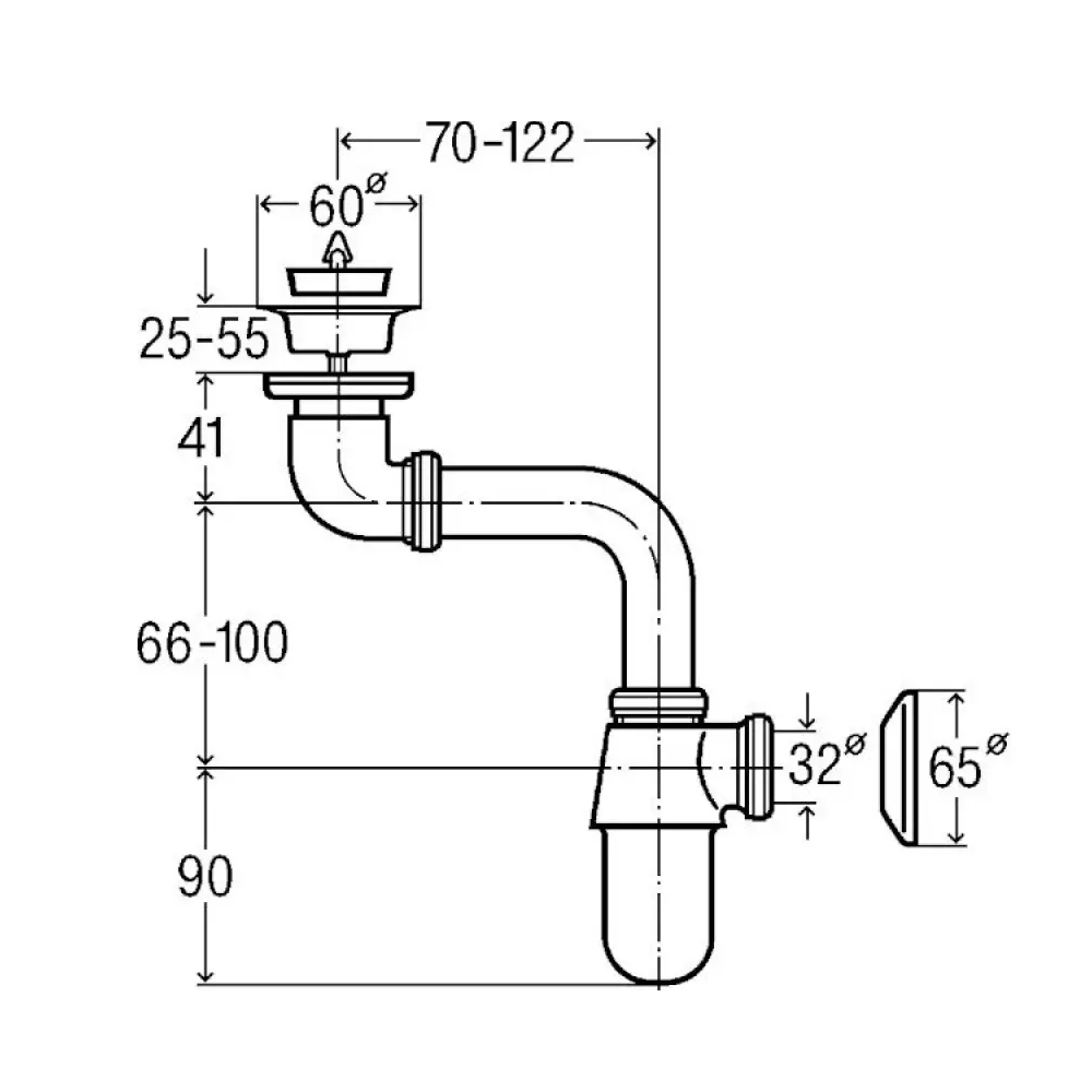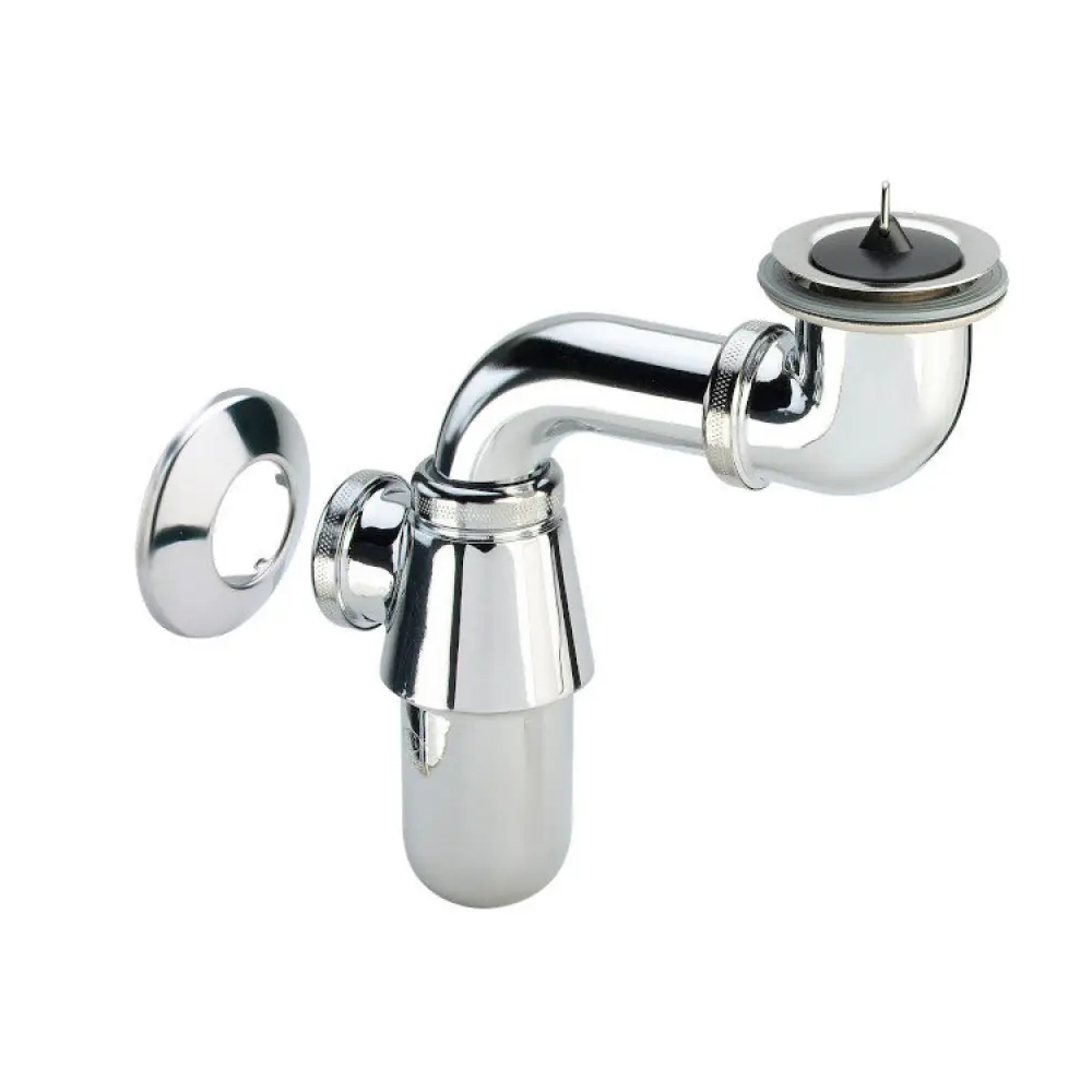 VIEGA Сифон для раковины бутылочный с выпуском, верхней розеткой и пробкой 1 1/4" х 32 мм хром 148355